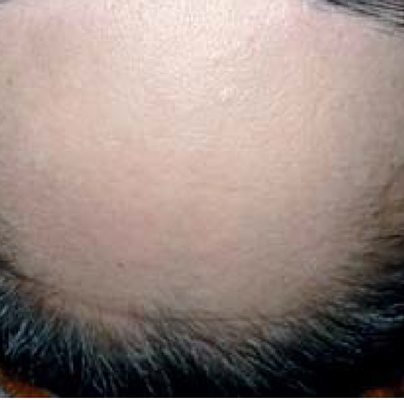„49 éves, változó korban lévő vendégem fejbőre több mint két éve viszketett, fájt, haja hullott, homlokán pedig egy kb. kétcentis sávban felkopaszodott. Bőrgyógyászati kezelések nem hoztak eredményt, hormonvizsgálata negatív lett. A fejbőr kozmetikai előkészítése után 6 alkalmas, 10–12 naponta végzett lézeres kezelést kapott. A kezelések hatására megszűnt a viszketés, a hajhullás normalizálódott, és a kopasz területen a haj újranőtt.”